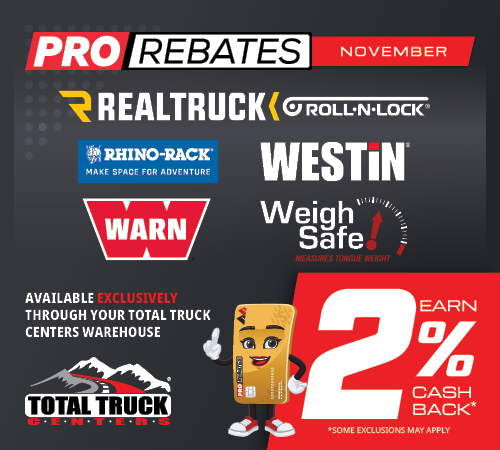 Buy products from the following brands from your Total Truck Centers distributor in November and get cash back based on the percentages shown. Rewards are paid via prepaid Visa debit card. That’s no-strings cash back just for buying the brands and products you normally would!